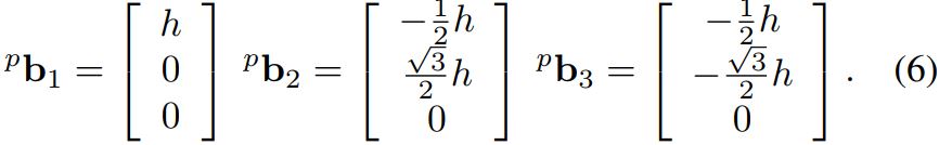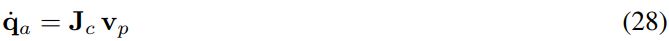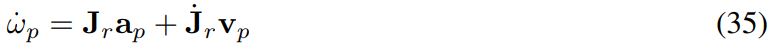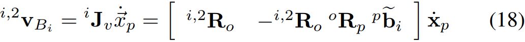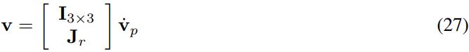 siendo x˙p = [vpx vpy vpz ωx ωy ωz]T , b representa la matriz antisimétrica que permite sustituir el producto vectorial bi×. Además: