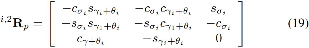 siendo zi = [0 0 1]T, i,2Ro es la matriz de rotación, (usando parámetros de D-H) entre el sistema local {Oi,2} respecto del sistema global {O} para la pierna i.