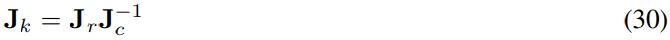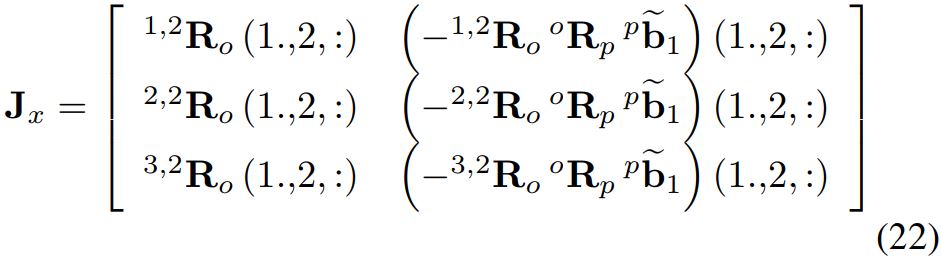 siendo Jr = Jr2−1 Jr1. Las velocidades de las componentes components vpx and vpx se obtienen derivando de las ecuaciones para xp y yp obtenidas en (15).