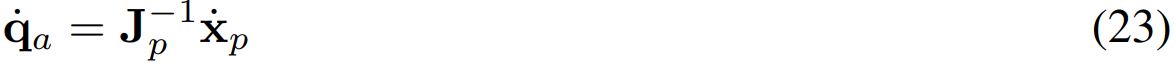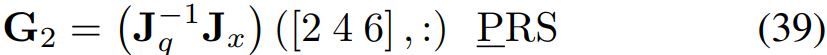 siendo Jp−1 = (Jq−1 Jx) ([1 3 5] , :) si el robot es actuado en el par prismático PRS y Jp−1 = (Jq−1 Jx) ([2 4 6] , :) si el robot es actuado en el par de revoluta PRS.