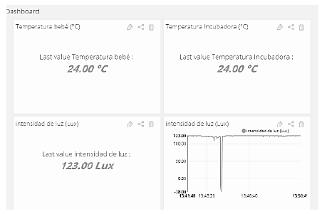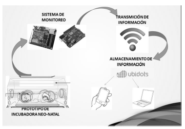 Se buscó monitorear y controlar variables como la temperatura y la luminosidad dentro de la incubadora; en este prototipo, los datos son monitoreados por medio del sistema microprocesado Arduino Ethernet, que permite enviar los datos de interés a través de Internet a la plataforma virtual UBIDOTS, dicha plataforma permite el almacenamiento de la información de las variables en la nube y con ello generar alarmas, gráficas en tiempo real y tener aplicaciones del Internet de las cosas, ya que se logra una interconexión digital entre los sensores del equipo con Internet; gracias a esto, se puede conocer el estado del neonato en cualquier instante a través de un celular, computador o tableta, mientras se tenga conexión a la red (Palencia y col., 2012).