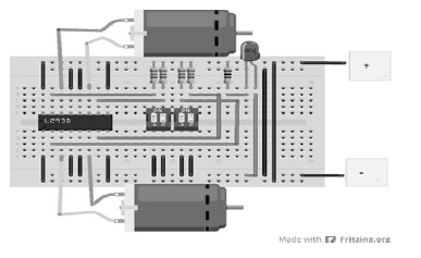 Se utilizó una etapa de potencia para poder realizar el control de los ventiladores a través del Arduino Ethernet; debido a que este dispositivo no puede proporcionar la corriente suficiente para hacer funcionar todo el sistema de refrigeración, fue necesario emplear un puente H (La Web del Ingeniero); en la Figura 5 se observa el circuito guía para realizar las conexiones, en donde los motores representan los ventiladores y el circuito integrado es el puente.