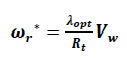 En la Región 1 se desea que la velocidad angular de la turbina haga seguimiento a la velocidad del viento a fin de mantener el valor de la relación de velocidad de punta 𝝀𝒐𝒑𝒕 que lleva a su valor máximo CpMAX el coeficiente de eficiencia de la turbina Cp, por lo que a partir de (2) puede establecerse la referencia de velocidad angular del eje 𝝎𝒓∗ viene dada según se muestra en (12).