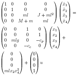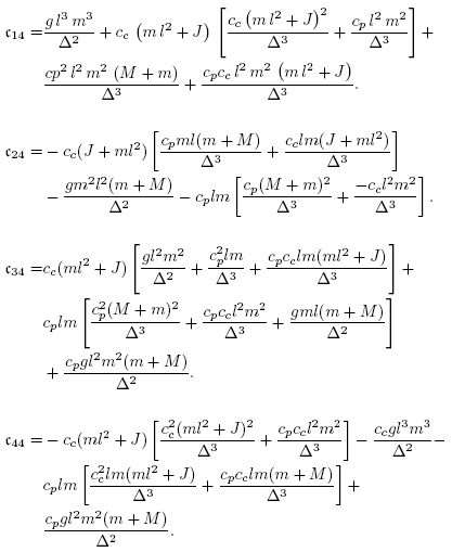 donde ∆ = Mml2 + J(m + M). Aplicando la transformación,se obtiene