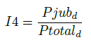 (4)I4: Proporción de profesores jubilables. Se construye con base en el número de profesores jubilables que hay en el departamento d (Pjubd), y el total de profesores del departamento, como se muestra en la ecuación (5). Se considera que un profesor es jubilable si cuenta con al menos 25 años de servicio, información que es proporcionada en los datos de entrada de los departamentos.
