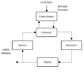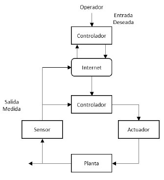 En el siguiente esquema, ver Figura 6, el controlador se ubica de manera remota, lo cual requiere que la información de campo y la acción de control se envíen a través de Internet. En este caso los retardos asociados a la transmisión si afectan la estabilidad del lazo.