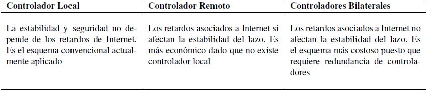 Una tercera configuración utiliza dos controladores, uno local que puede ser usado por ejemplo para asegurar la estabilidad y seguridad de la planta y otro remoto usado para optimizar la referencia del lazo. Este esquema es mostrado en la Figura 7 y en la Tabla 2 se muestra una comparación entre los distintos esquemas.