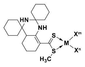 A suspension of 1 mmol of lead (II) or lead(IV) hydrated acetate in 5 mL of hexane/methanol (8:2 v/v) was added drop-wise with stirring, to a solution of 0.3 g (1 mmol) of LNS ligand in 20 mL of hexane. After 1 hour reflux, the colored solid was washed with a minimum amount of diethyl ether and suction collected using a Millipore (0.8 μM) filter. The complexes formed decompose above 150 °C. (LNS)Pb(II): green, yield: 0.3138 g (49 %); (LNS)Pb(IV): olive green, yield: 0.1664 g (26 %). MS (CI) P+•, m/z: [(LNS)Pb(II)], PbC20H32N2S2 calc.: 571.81, found: 571.45; [(LNS)(OH2)Pb(II)], PbC20H34ON2S2 calc.: 589.83, found: 589.60; [(LNS)(CH3CO2)Pb(II)], PbC22H35O2N2S2 calc.: 630.86, found: 630.60; [(LNS)Pb(IV)], PbC20H32N2S2 calc.: 571.81, found: 571.25; [(LNS)(OH2)Pb(IV)], PbC20H34ON2S2 calc.: 589.83, found: 589.50; [(LNS)(CH3CO2)Pb(VI)], PbC22H35O2N2S2 calc.: 630.86, found: 630.60. FTIR vibrational spectra band positions and assignments, n (cm-1) (s = strong, m = medium, w = weak, br = broad); (LNS)Pb(II): n(O-H), 3500m; n(N-H), 3448m,br and 3288m; n(C-H), 2932m; na(C=C)+na(C=N)+na(C(=O)O), 1589s; ns(C=C), 1442s; ns(C=N)+na(C=S), 1414s; ns(C(=O)O), 1348m; na(S- CH -), 1248m; r-CH , 936m; n (CSS-), 886w; n (CSS-), 662w. (LNS)Pb(IV): 3508m; 3448w, 3288m; 2932m; 1589s; 1442s; 1422s; 1348m; 1248m; 936m; 886w; 662w. Electronic spectral data, λ (cm-1) (e , M-1cm-1); (LNS)Pb(II): 240(9,469); 317(8,688); 400(19,263); 537(210). (LNS)Pb(IV): 239(9,313), 316(12,286); 400(27,731).