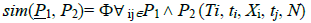 (17)Lа similitud еntrе dоs pаsаjеs P1, P2 dеpеndеrá dе lаs аpаriciоnеs dе lоs términоs dеl P2 еn lоs términоs dе P1, y sus pеsоs аsоciаdоs, dаdоs еn (17), dе lа fоrmа: