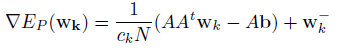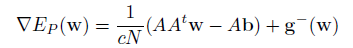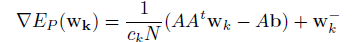 De forma análoga a la deducción del gradiente de P(w), se obtiene el gradiente de E(w)/c, resultando: