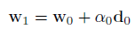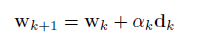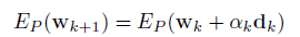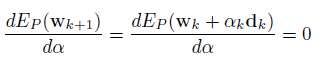 (22)Para determinar el valor óptimo del paso ɑk, suponiendo la dirección de búsqueda del mínimo dk como conocida, se plantea la función error de tal forma que quede en función del paso, es decir:
