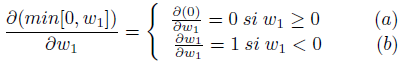 (16)Sin embargo, tomar en cuenta la parte (a) de la ecuación (16) no es necesario, puesto que si w1 ≥ 0 igualmente el valor de la ecuación (15) se haría cero, debido a que min[0;w1] también es cero en tal circunstancia. De manera que se puede simplificar la ecuación (15), así: