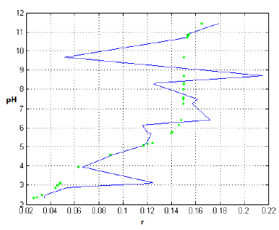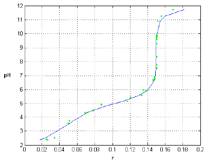 Recordando que, de acuerdo con la ecuación (3), a pesar de la apariencia de la gráfica de la curva de titulación (figura 10), matemáticamente pH es la entrada y r la salida.