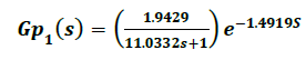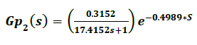 Para la obtención de los parámetros de cada función de transferencia, se hizo uso del método de ajuste 3 (fit.3.), procedimiento detallado en el libro de Smith & Corripio. Para obtener la función de transferencia que Gp2(s) se realizaron dos cambios de tipo escalón sobre la señal a la válvula m (t), de +- 10%CO y se grabó la respuesta de la variable intermedia C2 (t). Para determinar Gp1(s) se grabó la respuesta de la variable principal, C1 (t). Finalmente se promediaron los valores los parámetros de cada proceso, obteniéndose las siguientes funciones de transferencia: