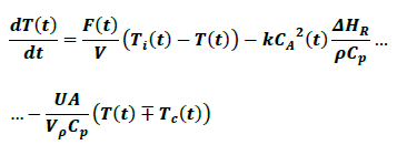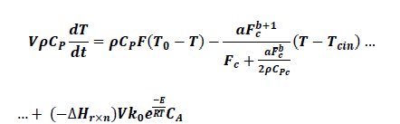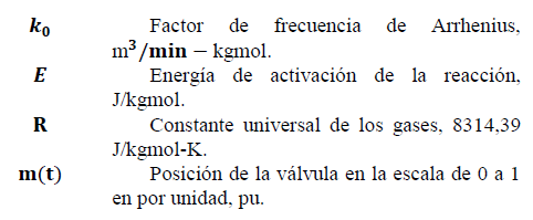 Se tiene que la dependencia exponencial de la velocidad de reacción respecto a la temperatura del reactor es una de las principales no linealidades del CSTR, como se muestra en la ecuación (1), llamada ecuación de Arrhenius.
