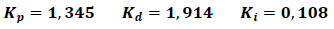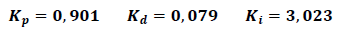 Usando los valores obtenidos, se tiene los siguientes valores a partir de la sintonización por Dahlin para el controlador PID: