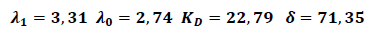 Usando los valores obtenidos, se tiene los siguientes valores a partir de la sintonización por Dahlin(Smith y Corripio, 2005) para el controlador PID: