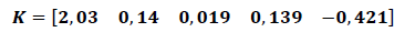 Por medio de todas estas expresiones y haciendo uso de la metodología sobre LQR, se obtiene la matriz de ganancias 𝑲.