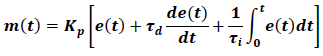Este tipo de controlador está conformado por tres términos o componentes: uno proporcional, uno integral y uno derivativo (Smith y col., 2005). La ley de control tiene la siguiente forma: