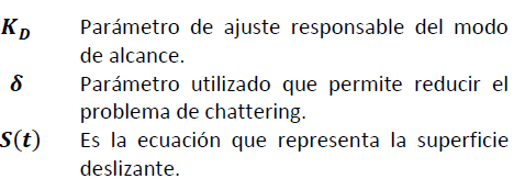 La acción de control de la técnica SMC está dada por la siguiente ecuación.