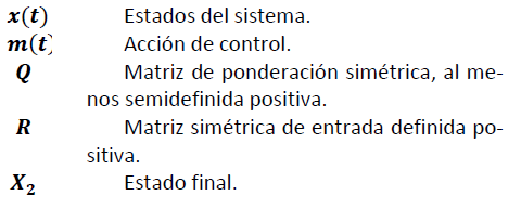 Si se considera un estado final nulo, el índice de coste se reduce a: