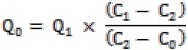 También es necesario establecer la concentración de sal inicialmente presente en el río, C0. Si ésta fuera excesivamente elevada, debe cambiarse la sustancia trazadora. Aplicando el principio de conservación de masa, se tiene: Q0 * C0 + Q1 * C1 = (Q0 + Q1) C2. De donde,