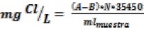 Al finalizar el ensayo, se procede a determinar la concentración de cloruros en el agua, expresada mg/L.