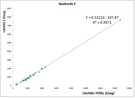 Al correlacionar los caudales correspondientes a la quebrada 2 contra el caudal total, se obtuvo como resultado la siguiente ecuación: