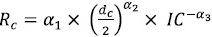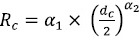 (2)Donde Rcy dc son radio y diámetro de copa en metros respectivamente, y α1, α2 son coeficientes estimados por regresión no lineal. Para determinar el radio de copa bajo condiciones de competencia se utilizó la siguiente fórmula: