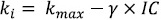 Donde kmax es la tasa de crecimiento máxima observada para la especie y Y es un parámetro a estimar. Por tanto, a mayor IC, el crecimiento diamétrico tiende a un valor asintótico menor al potencial (dmax) y también se reduce la tasa de crecimiento kicon respecto a kmax, es decir la aproximación al diámetro asintótico será más lenta. Cuando el grado de competencia al cual está sujeto un árbol dado, es reducido de manera drástica debido a la muerte natural o por la corta de uno o varios competidores este no recuperará instantáneamente su dmax y kmax potenciales, sino que estos valores se incrementarán lentamente dependiendo del valor ponderado de dmax y k que el árbol tuvo en los cuatro años anteriores al cambio súbito. Así, para el coeficiente k,