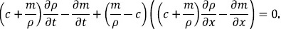A continuación se presentan las ecuaciones características para el modelo homogéneohiperbólico. Existen dos autovalores distintos para la matriz Jacobiana asociada a nuestro sistema; en efecto, tomando u = m/p se tiene: