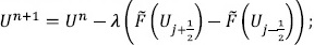(10)A continuación presentamos el método TVD de alta resolución para las leyes de conservación, homogéneo hiperbólico. Este método ofrece un orden dos de exactitud, el cual será aplicado sobre 5 nodos del dominio discretizado. Consideremos un sistema hiperbólico homogéneo de leyes de conservación: