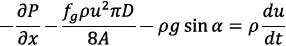 (2.a)Por otra parte, si se considera la ecuación de Darcy- Weisbach,(Villarreal, 2009, White 2011),y se multiplica por el inverso del área y del intervalo de espacio, de la ecuación se puede deducir