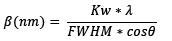 Ec. (01)Kw = constante de Scherrer (0,9),