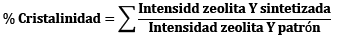 El porcentaje de cristalinidad para los sólidos fue calculado sumando las intensidades de los máximos de difracción característicos de zeolita LTA sintetizada dividido entre la sumatoria las intensidades obtenidas para la zeolita LTA patrón multiplicado por 100 (Ec. 02).