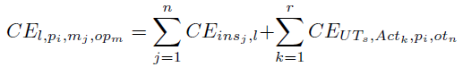 CEl;pi;mj;opm es el consumo de energía acumulado en la etapa l para obtener el producto pi usando el modelo del producto mj en la orden de producción opm,