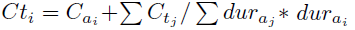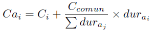 Para el caso mostrado en la Figura 5-b el consumo común se prorratea por período de tiempo, entre todas las actividades o la porción que están en el lapso de tiempo tomado como referencia. El prorrateo se hace tomando en cuenta la duración de las distintas actividades tal como se da en la ecuación siguiente.
