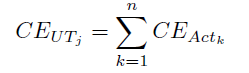 El consumo energético en una etapa del producto se calcula sumando la energía de cada actividad que se realiza en la Unidad de Trabajo UTj, y viene dado por: