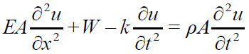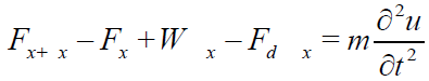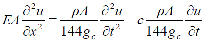 (9)El peso del elemento de la sarta, es una fuerza estática que permanece constante durante un ciclo de bombeo, y por consiguiente no se tomara en cuenta para la solución general de la ecuación de diferencial de onda, para la simplificación de los cálculos y siguiendo lo expuesto por Everitt en su artículo técnico (Gibbs, 1963),solo se abordara la solución homogénea de la misma.