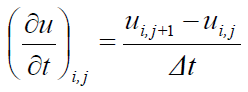 (15)Estas fórmulas son parte de las aproximaciones de las series de Taylor, si son insertadas dentro de cualquiera de las versiones de la ecuación de onda, puede ser resuelta numéricamente. Existen dos posibilidades de solución: