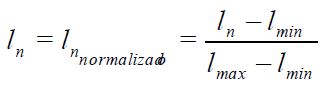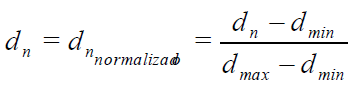 El rango de valores en la carta de dinamómetro puede variar según las características del pozo de origen, por lo que se utiliza una normalización de pre proceso como en las ecuaciones 22 y 23, donde dmin, dmax, lmin, lmax son respectivamente los valores mínimo y máximo del desplazamiento y carga.