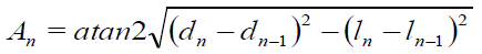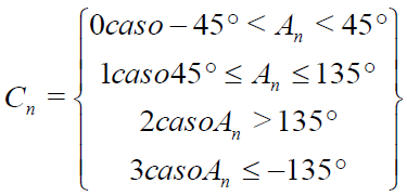 (23)Con el proceso de normalización, los valores de las tarjetas del dinamómetro variarán entre 0 y 1, simplificando los cálculos futuros. A partir de los valores normalizados, se extrae el vector de ángulos A, formado por cada par de puntos secuenciales como en la ecuación 24.