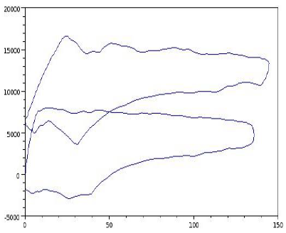 (27)Después de la filtración, el algoritmo descrito aquí se repite hasta que el código de cadena comprimido coincida con uno de los polígonos esperados. Es importante comprender que, con suficientes ciclos de filtración, cualquier contorno cerrado puede aproximarse a un tetrágono por este método, pero las distorsiones en los puntos de la carta dinagráfica pueden ser enormes, y la identificación de la apertura y el cierre de la válvula puede perder precisión. Las hipótesis del hexágono cóncavo aumentan la precisión del método, ofreciendo una opción cóncava para colocar tarjetas con una concavidad en la descarga, lo que aumenta la precisión y minimiza la necesidad de ciclos de filtrado. Con la aproximación poligonal realizada, los puntos de apertura y cierre de la válvula se pueden identificar en sus esquinas. Una descomposición poligonal se ejecuta simplemente identificando los lados del polígono como los grupos de códigos idénticos, y las esquinas del polígono son los primeros puntos en estos grupos.