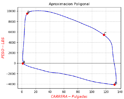 Para la validación de la fase de detección de fallas basado en patrones operacionales, se obtuvo la identificación de los puntos de apertura y cierre de las válvulas sobre las cartas dinagráficas (ver Fig. 11 y Fig. 13). Lo que demuestra la viabilidad del enfoque utilizado y la precisión de la clasificación obteniendo a su vez la aproximación poligonal adecuada de acuerdo a los polígonos predefinidos; Tetrágono y hexágono Cóncavo (ver Fig. 10 y Fig. 12) lo que demuestra la ventaja del método utilizado.