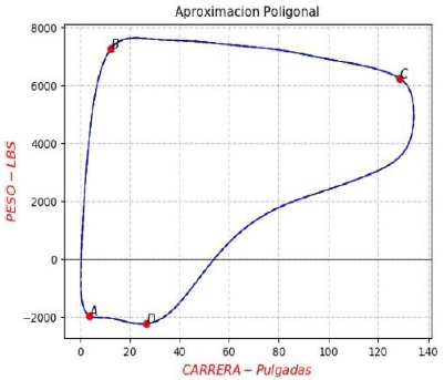 Esta sección introduce la metodología propuesta para el diseño del SvMD a través de la Identificación del escenarios operacionales y posibles fallas en pozos que operan por levantamiento artificial por balancín. La metodología consiste en dos fases: inferir la carta de fondo a través de la ecuación de onda para luego identificar la apertura y cierre de las válvulas fija y viajera en un ciclo de bombeo. La ecuación de onda fue extraída de la sarta de cabillas, siendo este el elemento más importante en el sistema de bombeo mecánico. Debido a sus propiedades elásticas, mucha información relativa al estado del pozo y al equipo de subsuelo viaja a través de la sarta en forma de ondas de sonido, aprovechando este fenómeno es posible recolectar información e inferir la carta dinagráfica de fondo, generando un vector de aproximaciones de las variables deseadas en un intervalo de tiempo más pequeño. Para identificar la apertura y cierre de las válvulas fija y viajera en un ciclo de bombeo se propone un método para aproximar el borde de las cartas dinagráficas de fondo por una sucesión de segmentos rectos como consecuencia de la aproximación, el borde se suaviza, eliminándose las perturbaciones presentes en la carta dinagráfica de fondo original. Así, se propone un algoritmo de simplificación de curvas de borde mediante transformación de dichas curvas a polígonos, con el uso de técnicas de representación de forma como el código de cadena (Han y col., 2016, Hsiung y col., 2018), se logran aproximaciones adecuadas de las curvas y además se permite ignorar efectos de perturbación presentes en las cartas, permitiendo un mejor análisis, basado en polígonos esperados (tetrágono y hexágono cóncavo) como se muestra en la Fig. 6.