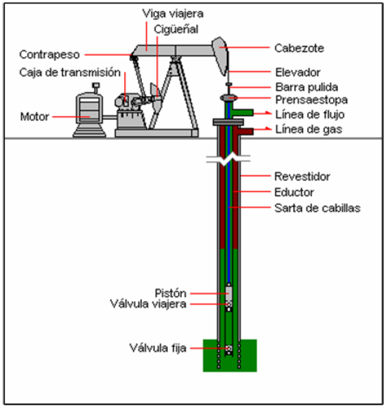 El bombeo mecánico es el más común de los métodos de levantamiento artificial, empleado para la extracción de crudo en pozos con volúmenes pequeños y medianos de producción y especialmente en crudos medianos y pesados, los cuales requieren la inyección de diluentes o vapor para facilitar su extracción. Este método tiene como principio fundamental levantar los fluidos desde el yacimiento hacia la superficie. Consiste en una bomba de subsuelo de acción reciprocante y desplazamiento positivo conectado a una sarta de cabillas que permiten transmitir el movimiento generado en la superficie por la unidad de bombeo o balancín a través de la energía suministrada por un motor eléctrico o de combustión interna.