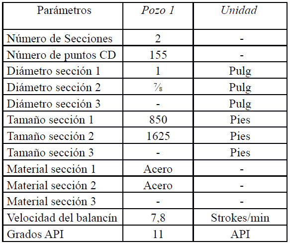 Para la validación del sistema de Modelado se emplearon datos históricos del comportamiento de un pozo; estos datos utilizados se muestran en la tabla 1.
