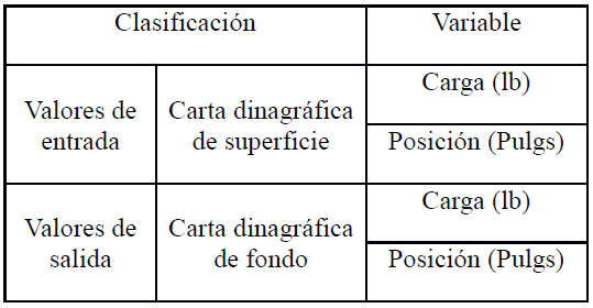 (21)Para cada enésimo punto en la carta (dN, lN) n = 1, donde dN es el desplazamiento de cada punto de la carta dinagráfica de fondo, lN es la carga y N es la cantidad de puntos.