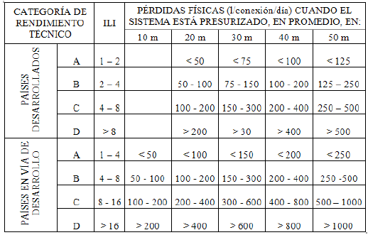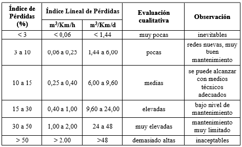 En cuanto a las pérdidas reales, se ha adoptado, como indicador de gestión, de acuerdo a lo mostrado en la Figura 2, el indicador que corresponde (Medina 2011).