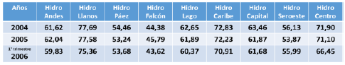 En este mismo orden de ideas, la hidrológica venezolana, HIDROVEN, reporta en el período comprendido entre 2004 hasta el primer semestre del 2006, el IANF, según se puede apreciar en la Figura 5.